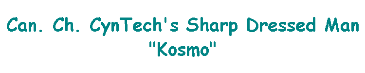 Kosmo made his debut in the show ring, along with his litter sister, Can. Ch. CynTech's Ally McBeal DOM (Allie), on October 22, 1999, at the Northern Alberta